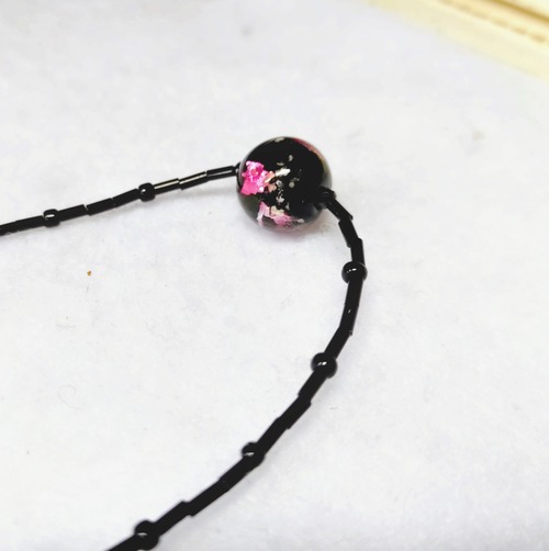 【 色 】とんぼ玉:黒、ピンク/ビーズ:黒/金具:シルバー