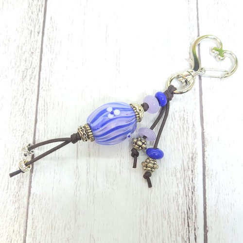 透き流しの技法を使ったとんぼ玉を、キーホルダーに仕立てました。